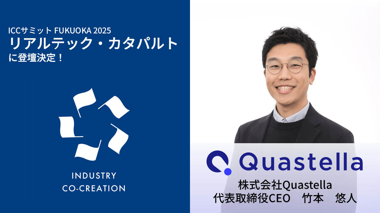 株式会社Quastella(本社:愛知県名古屋市、代表取締役CEO:竹本悠人、以下、当社)は、Industry Co-Creation® (ICC) サミット FUKUOKA 2025 「リアルテック・カタパルト」に当社の代表取締役CEOの竹本悠人が登壇することをお知らせします。